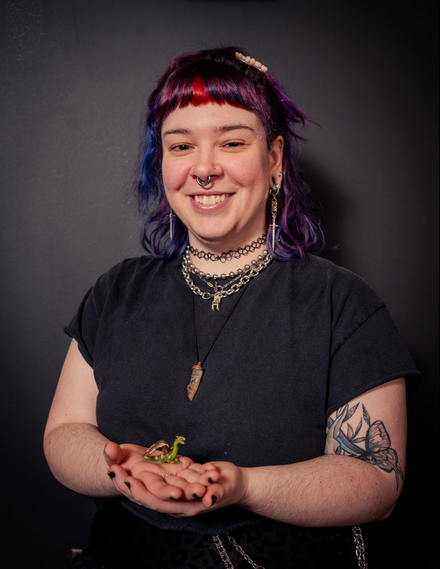 Maggie is a Body Piercer established in late 2022. Inside the shop, she is happy to work with every body regardless of size, shape, color, or identity. Some of her favorite piercings include eyebrows, rooks, and nipples, and generally anything that is unique to the individual’s specific anatomy. Outside the shop, she can be found in the garden looking for bugs, making digital artwork or at the edge of a mosh pit.